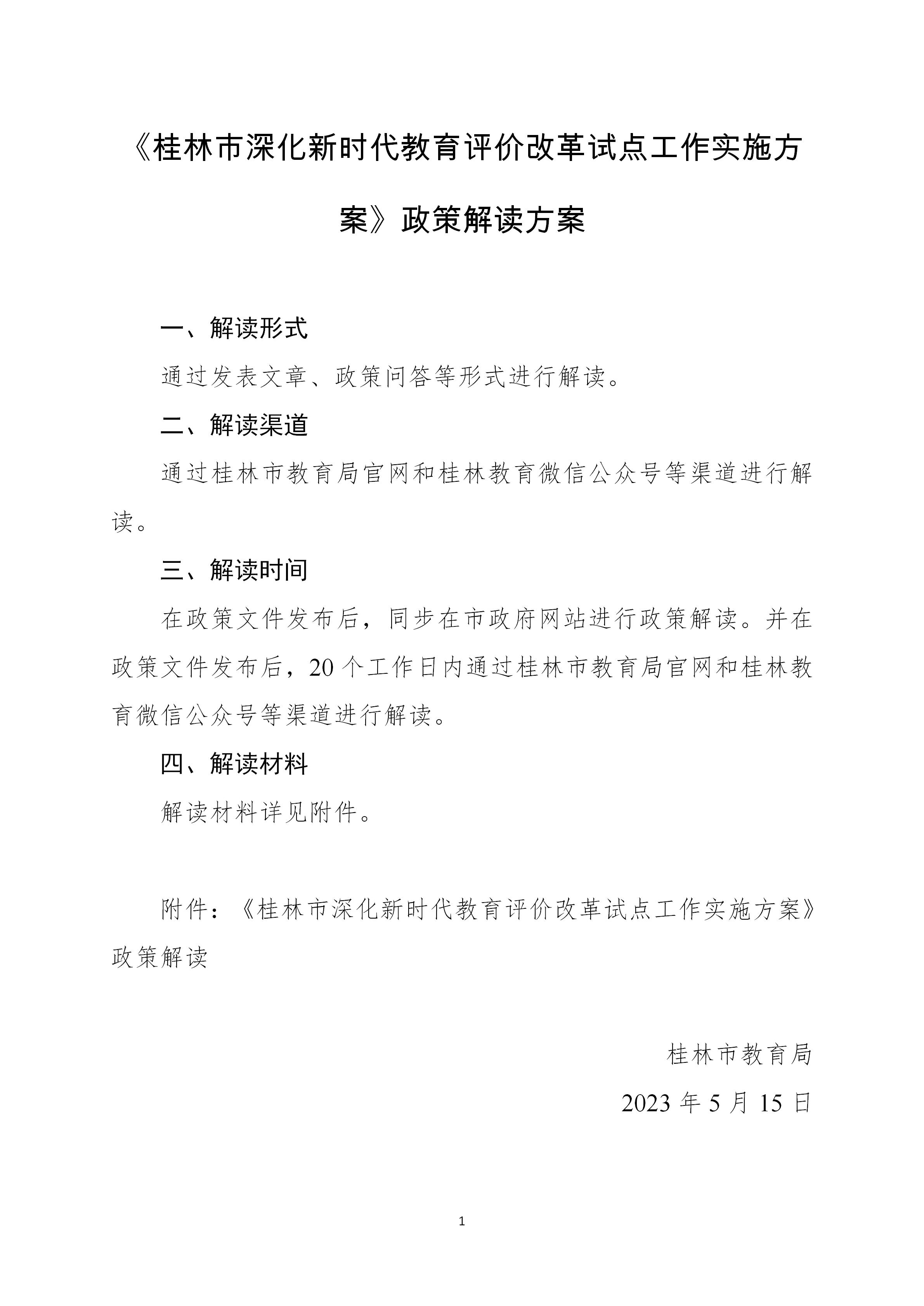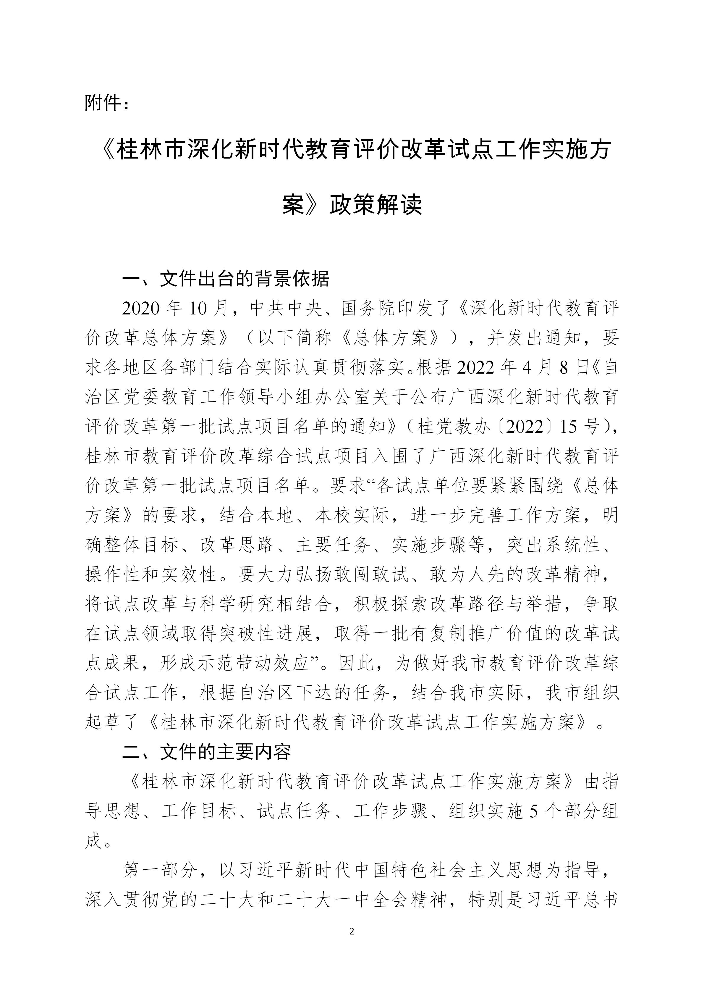 《桂林市深化新时代教育评价改革试点工作实施方案》政策解读方案