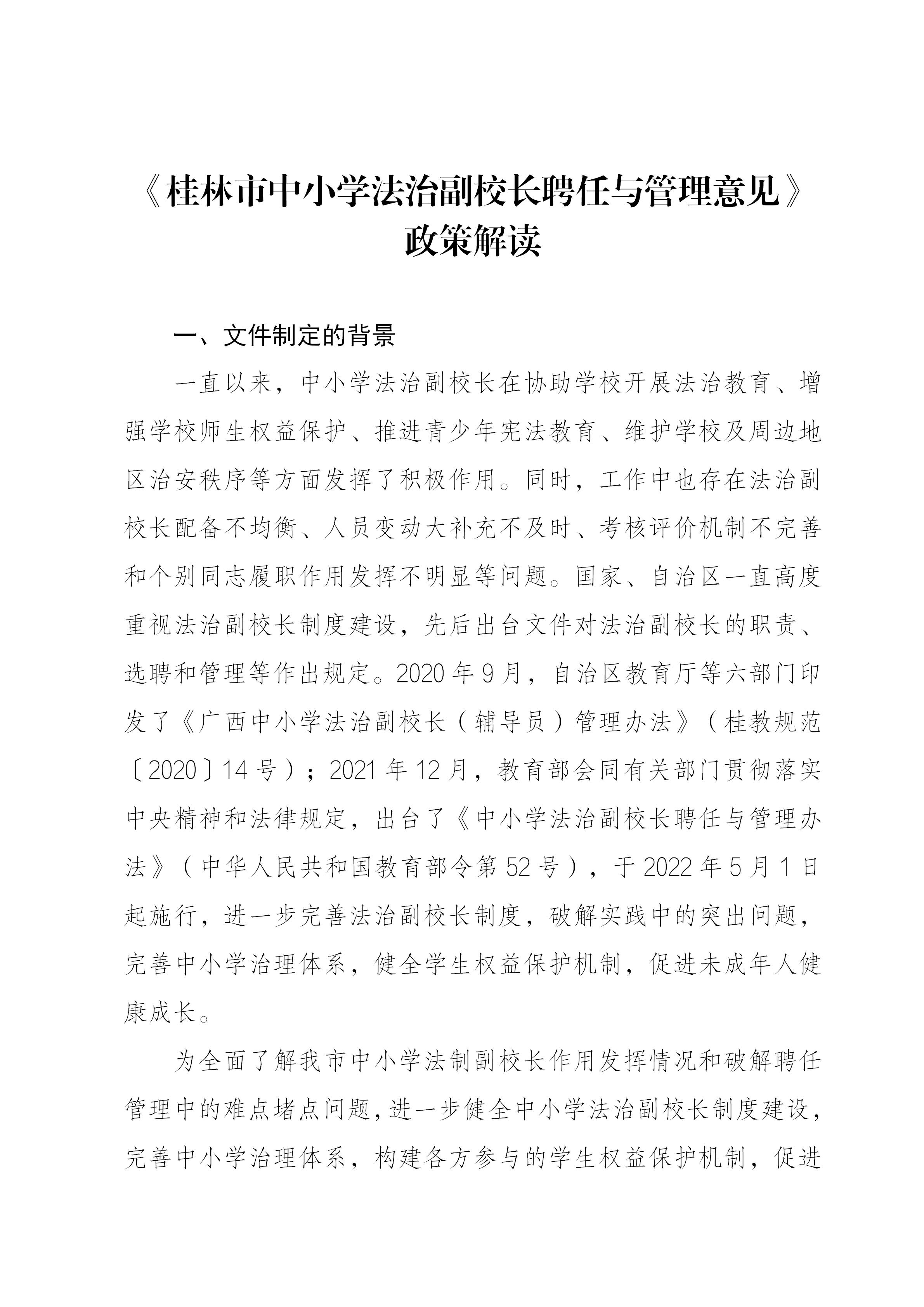 《桂林市中小学法治副校长聘任与管理意见》政策解读