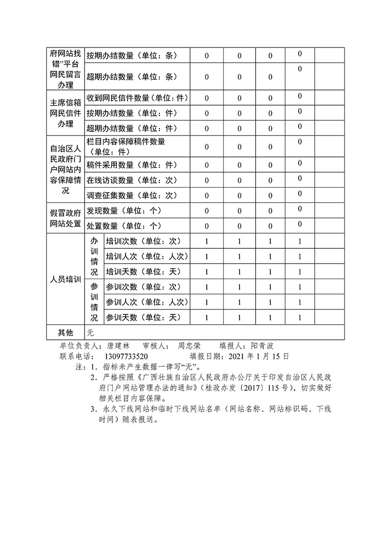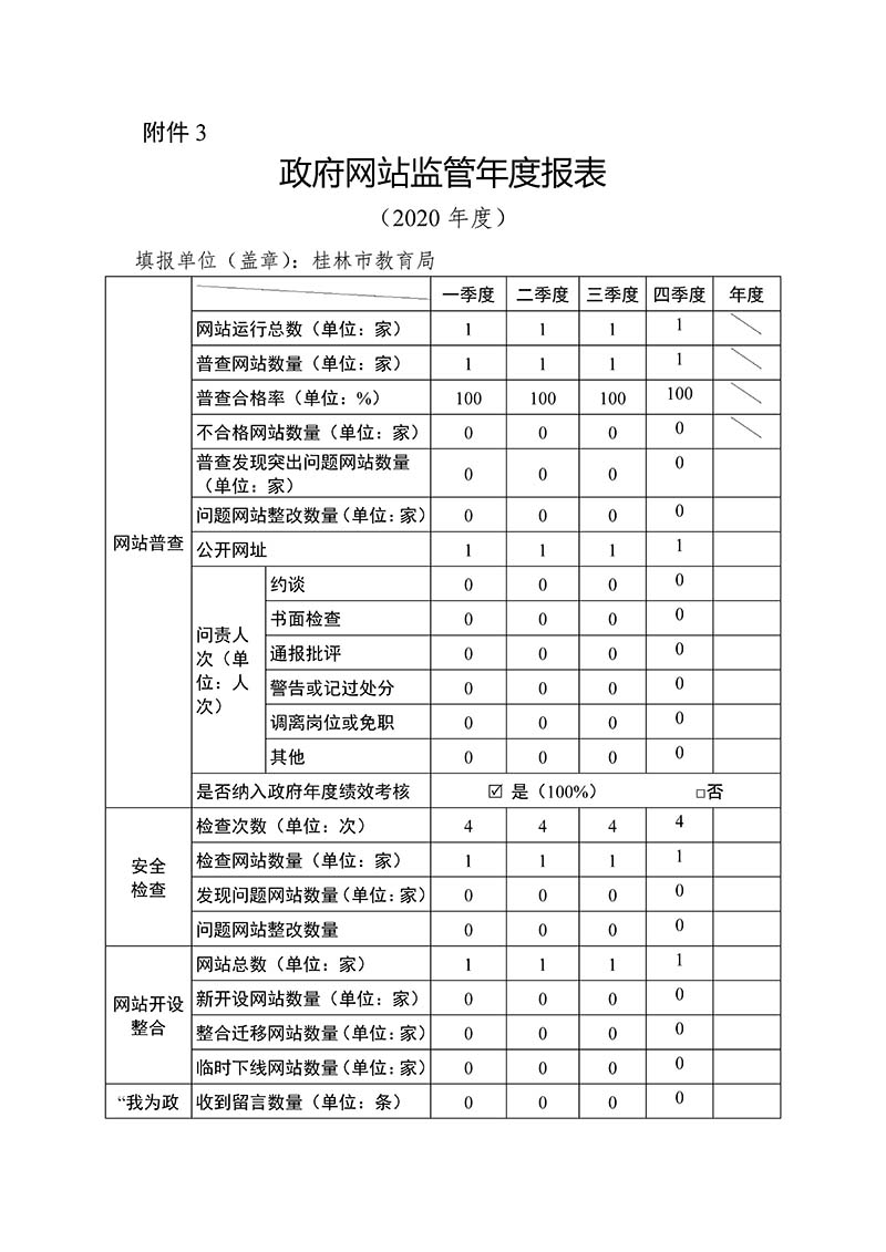 桂林市教育局政府网站监管2020年度报表